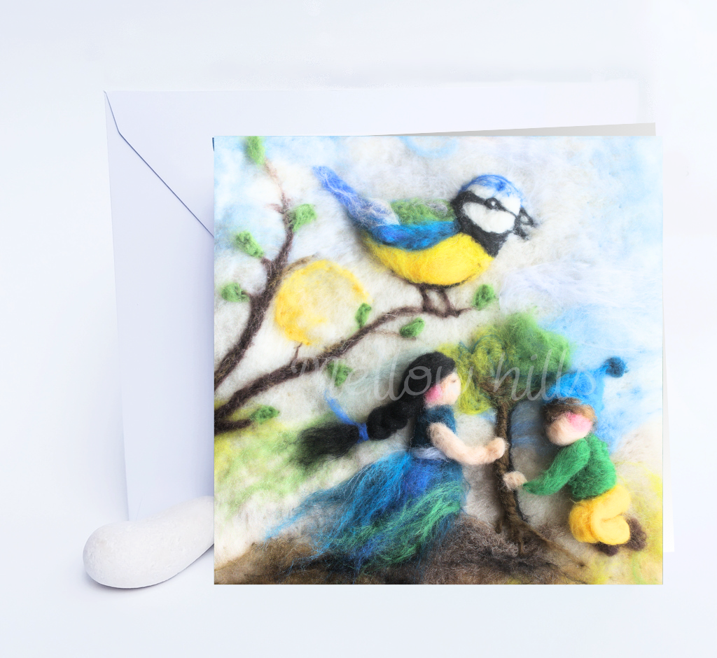 Jarní radosti, a sázení stromečku - to je reprodukce vlněného obrázku.