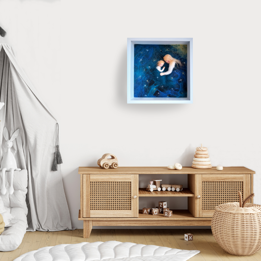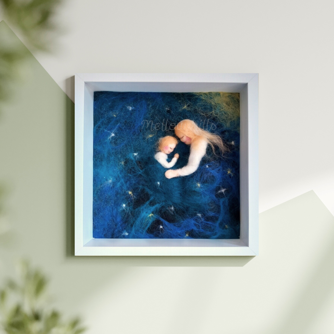 Vlněné malby Mellow hills jsou vytvořeny pomocí mokré i suché techniky plstění přírodní vlnou.