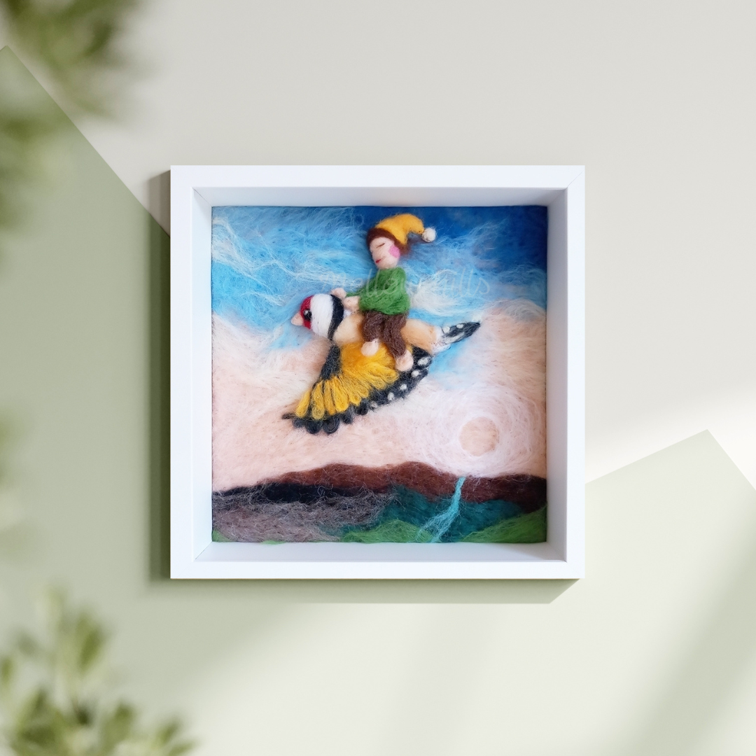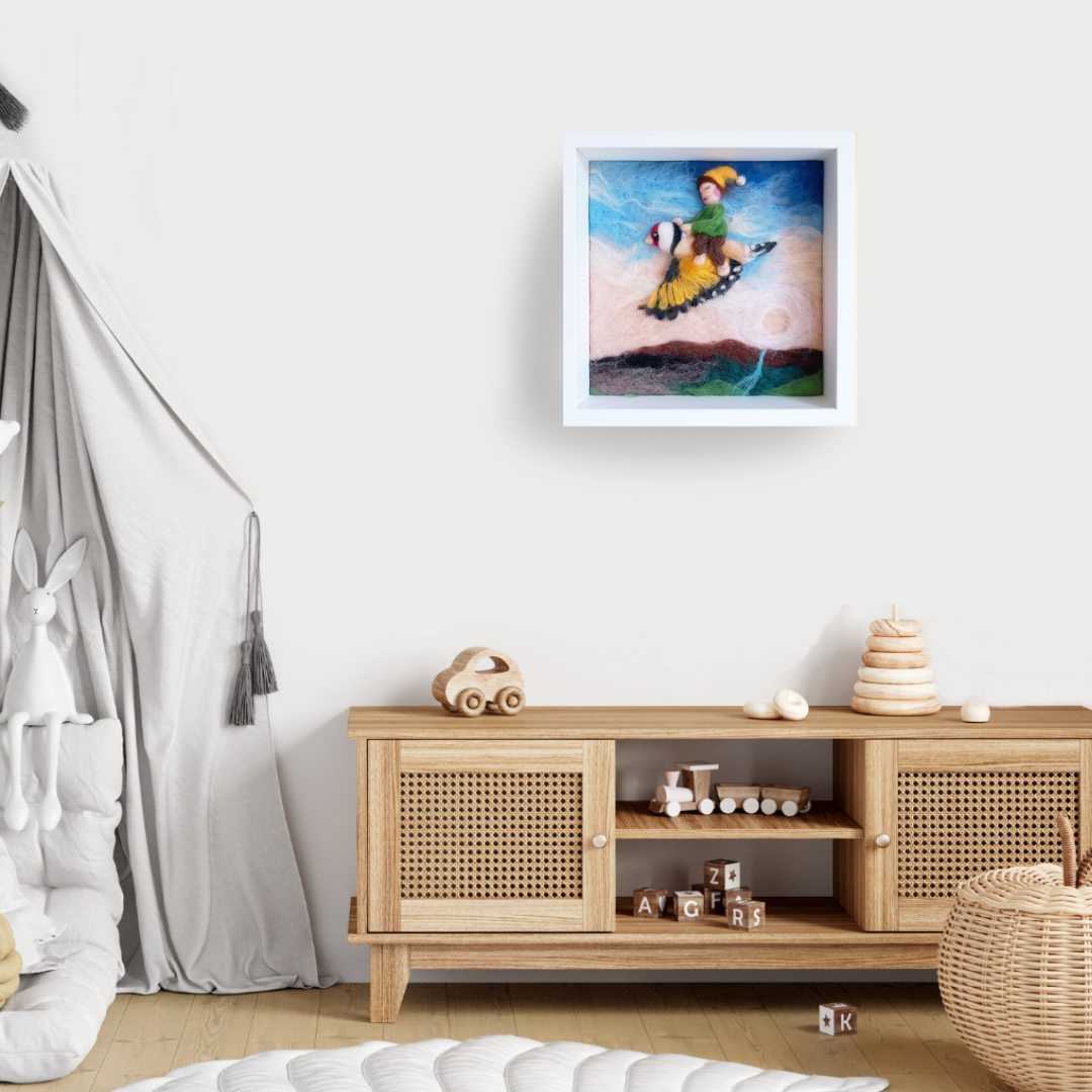 Vlněné malby Mellow hills jsou vytvořeny pomocí mokré i suché techniky plstění přírodní vlnou.