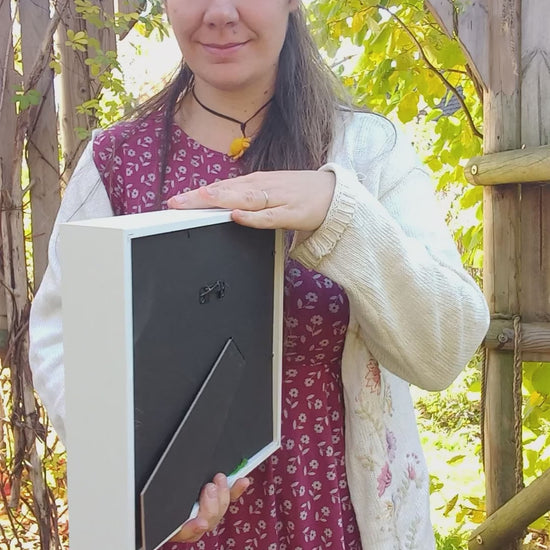 Obraz je dodáván se samolepícím háčkem pro pověšení bez vrtání. Můžete jej však i umístit na nábytek a opřít, díky zabudovanému stojánku.