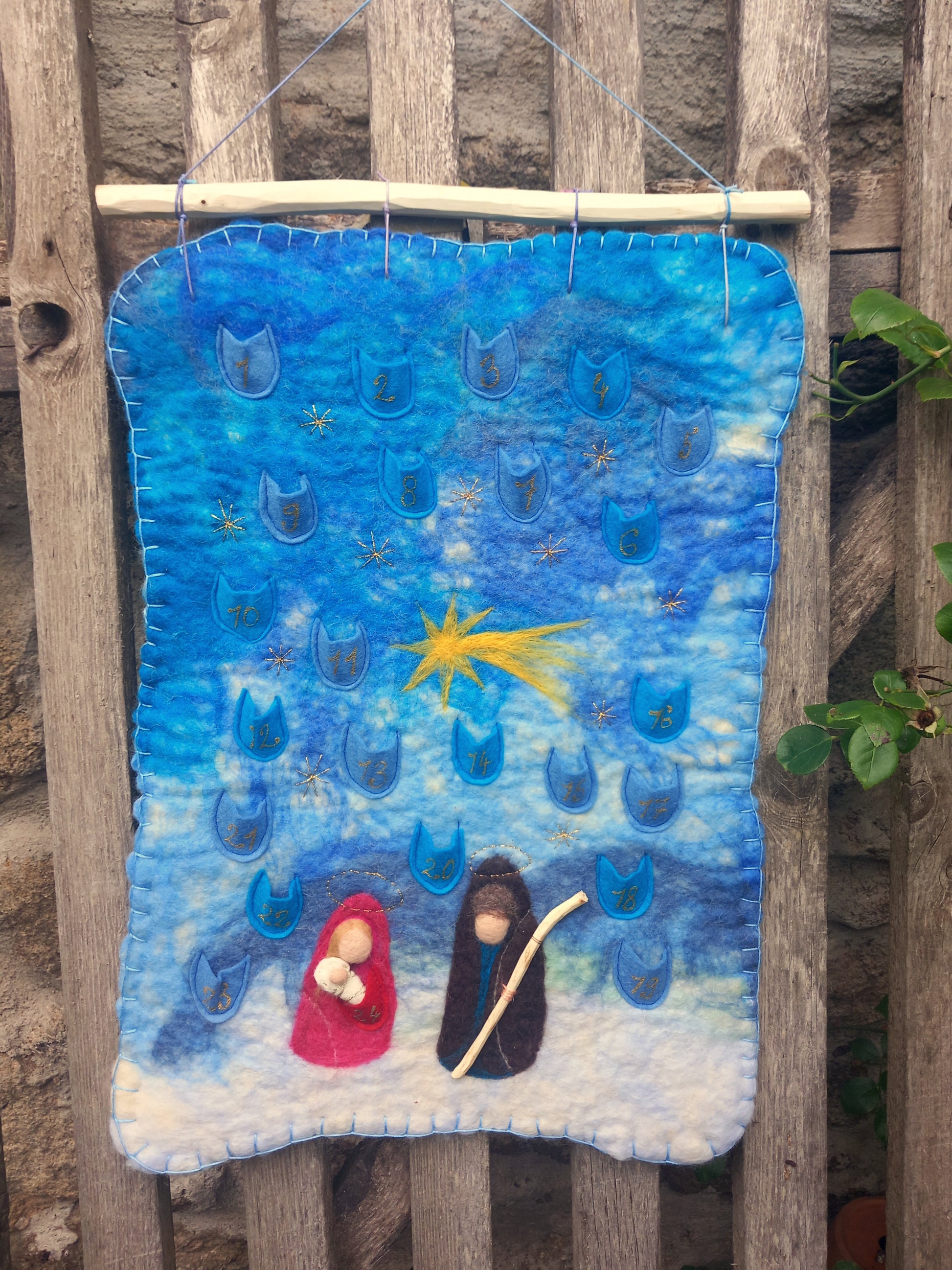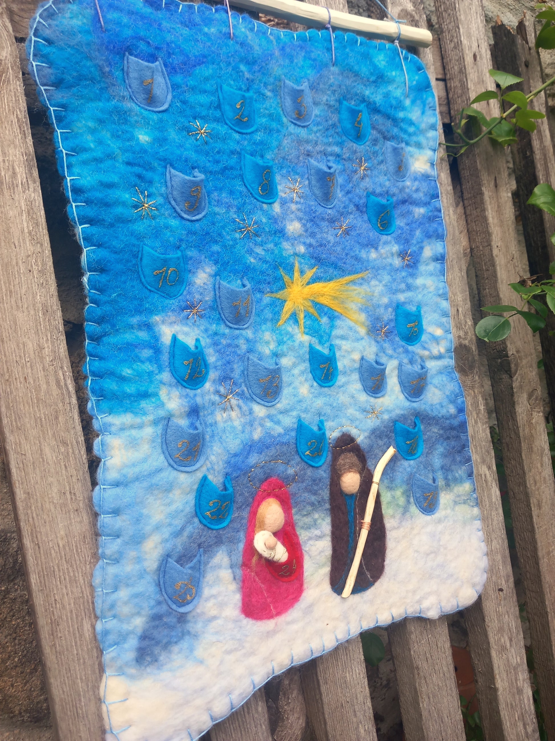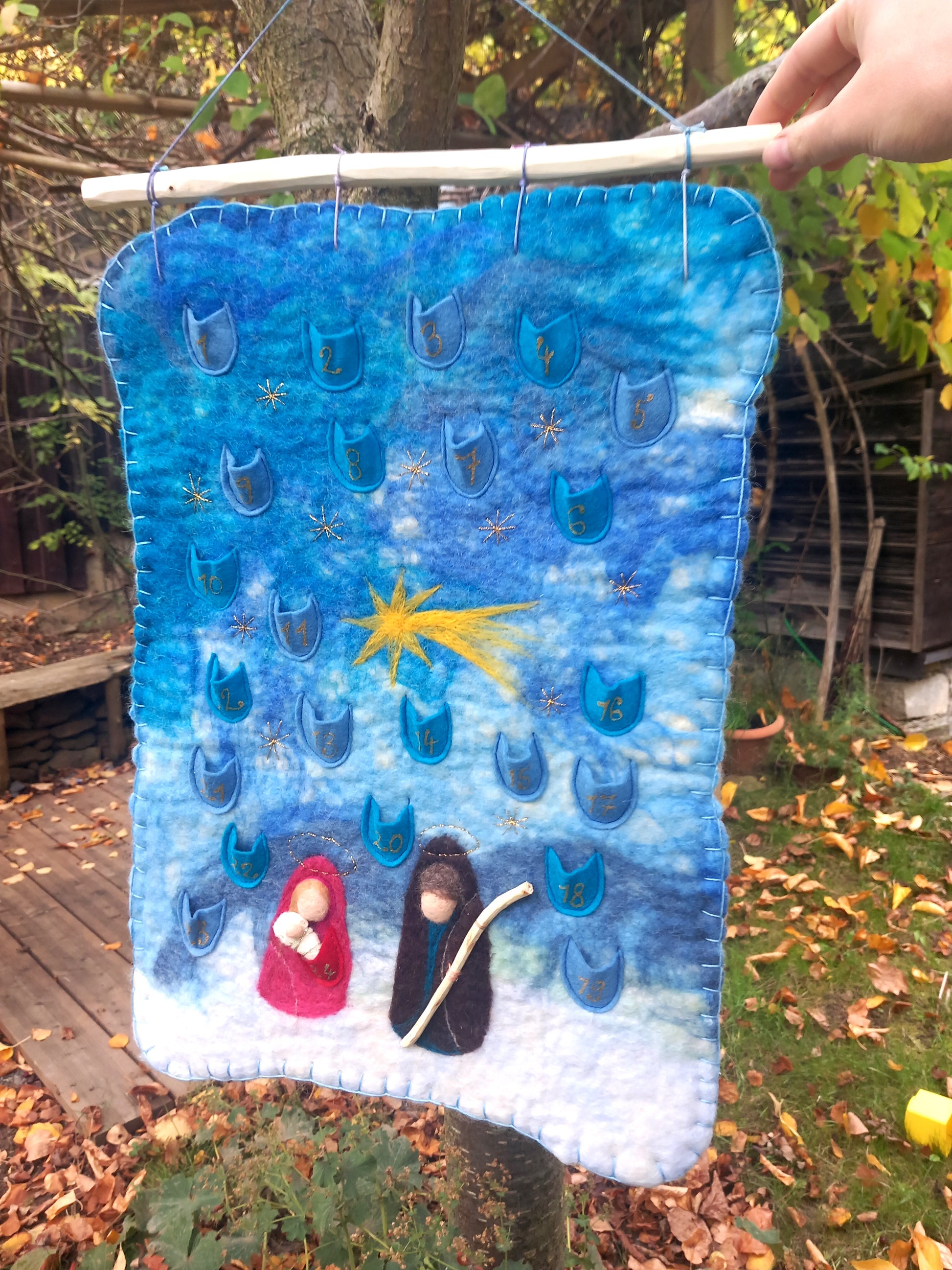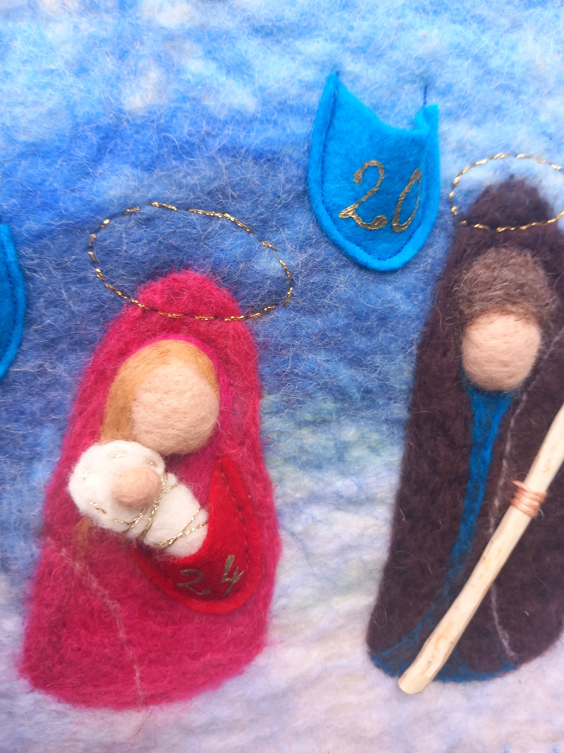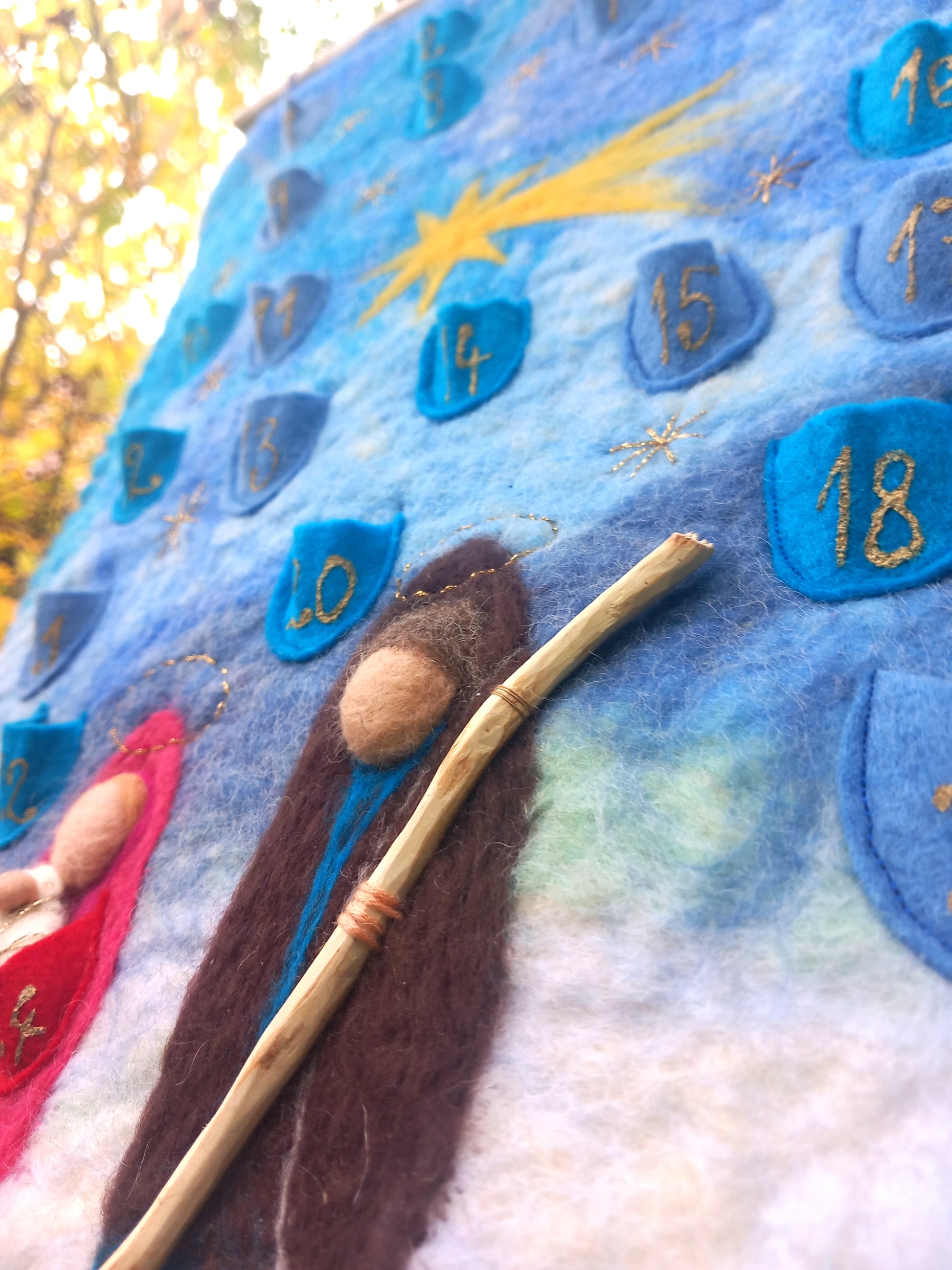 ✨️Nejdůležitějším prvkem je maličký Ježíšek z hebkého bílého ovčího rouna... putuje po hvězdách, až se dostane ke své mamince Marii a otci Josefovi. Putuje z kapsičky do kapsičky po číslech, a tak mu s tím můžete doma pomoci.... Víme tedy, kolikátého prosince právě je.