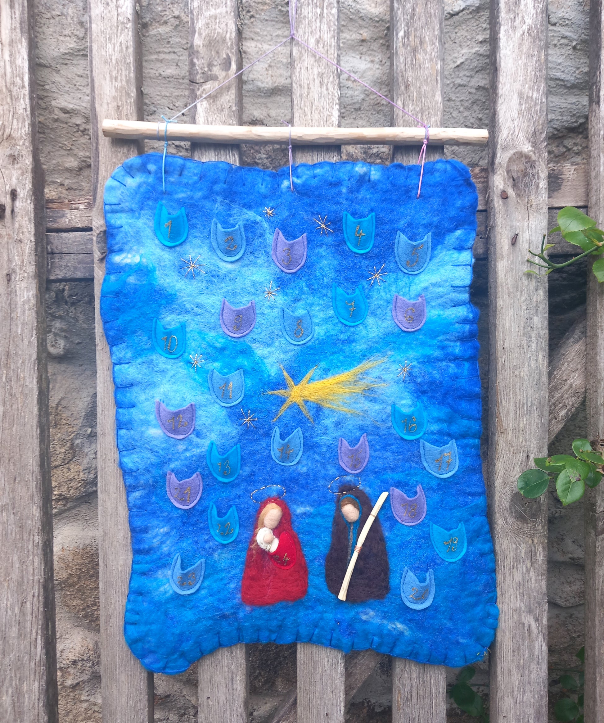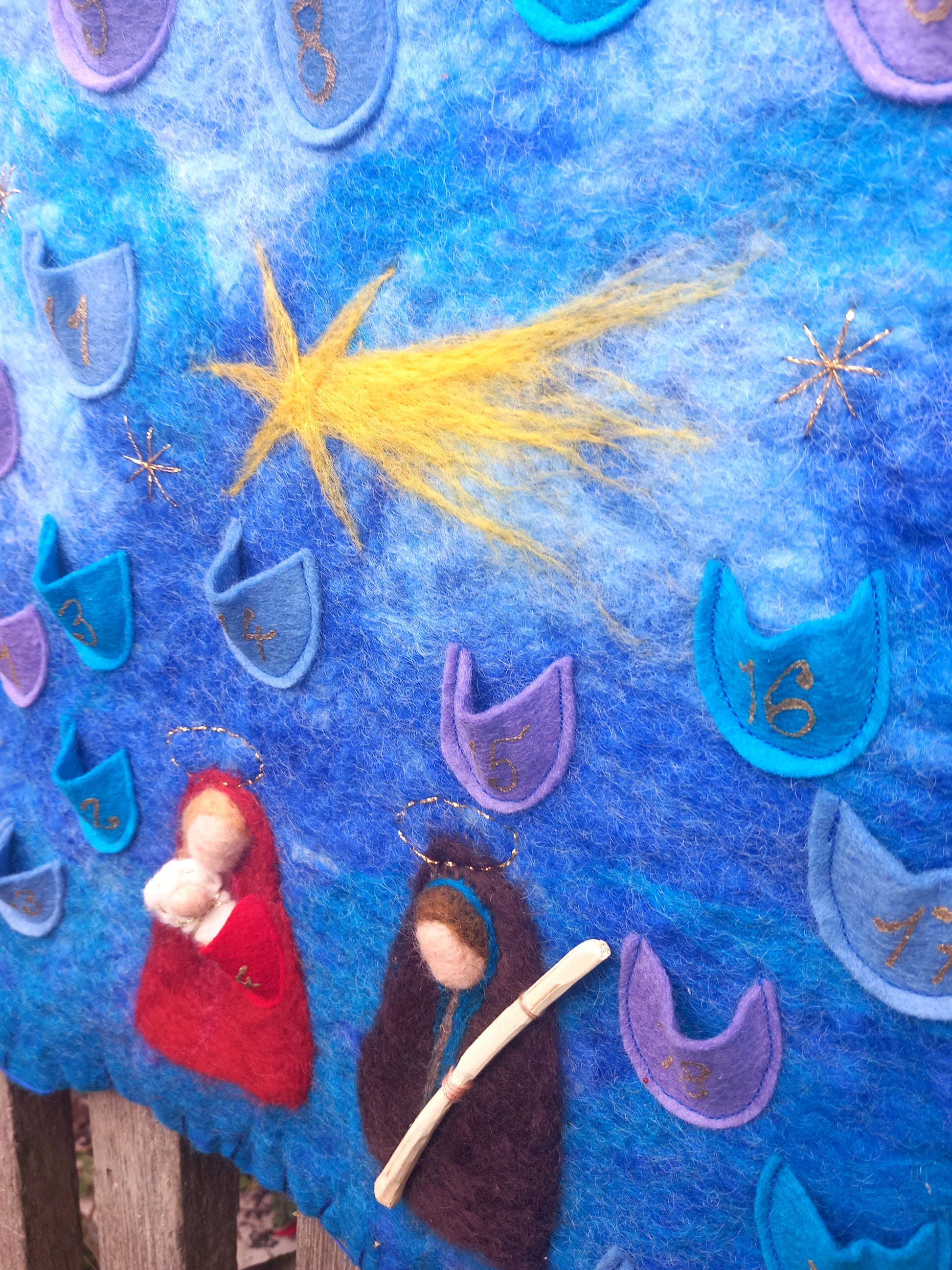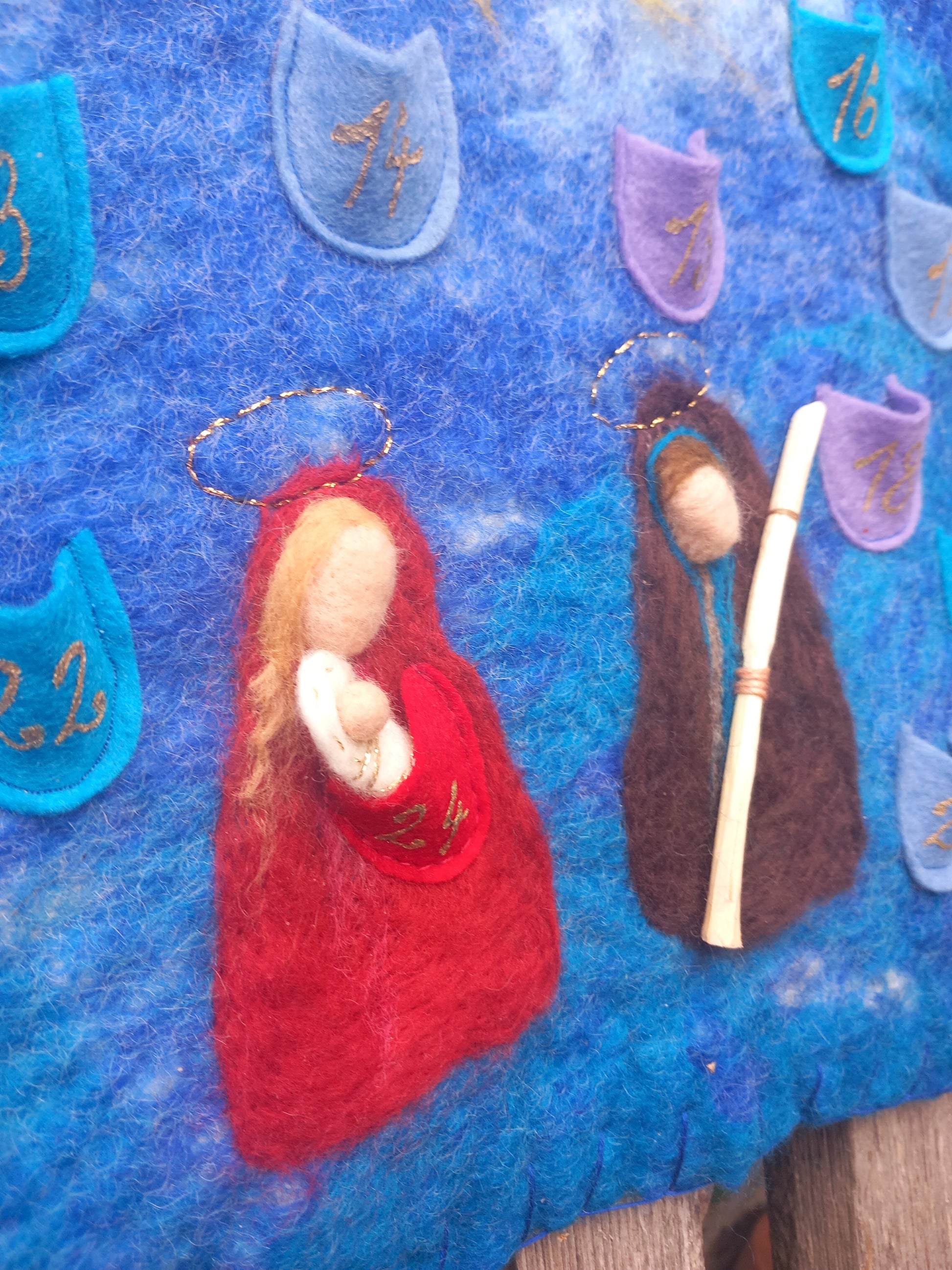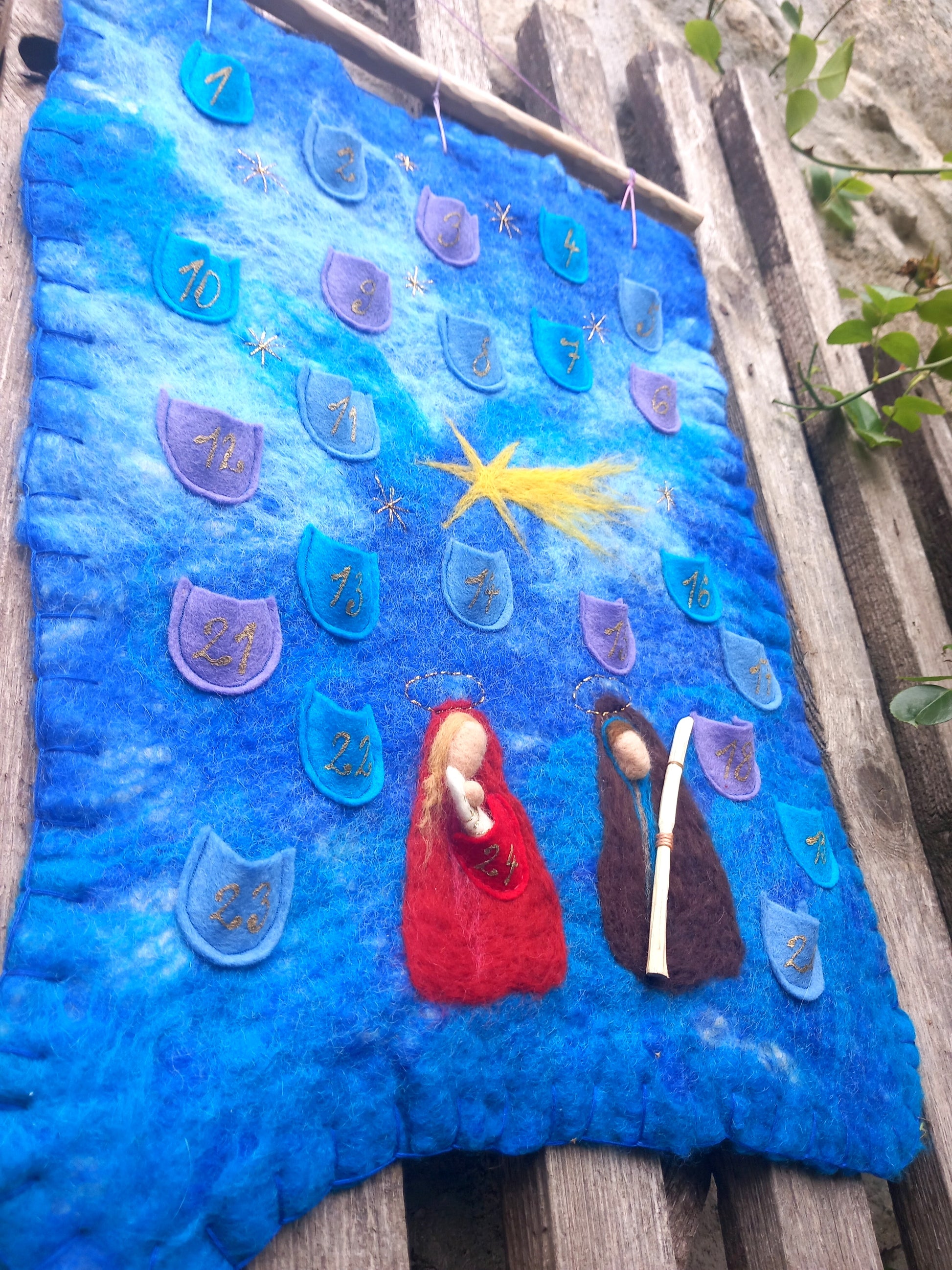 ✨️Nejdůležitějším prvkem je maličký Ježíšek z hebkého bílého ovčího rouna... putuje po hvězdách, až se dostane ke své mamince Marii a otci Josefovi. Putuje z kapsičky do kapsičky po číslech, a tak mu s tím můžete doma pomoci.... Víme tedy, kolikátého prosince právě je.