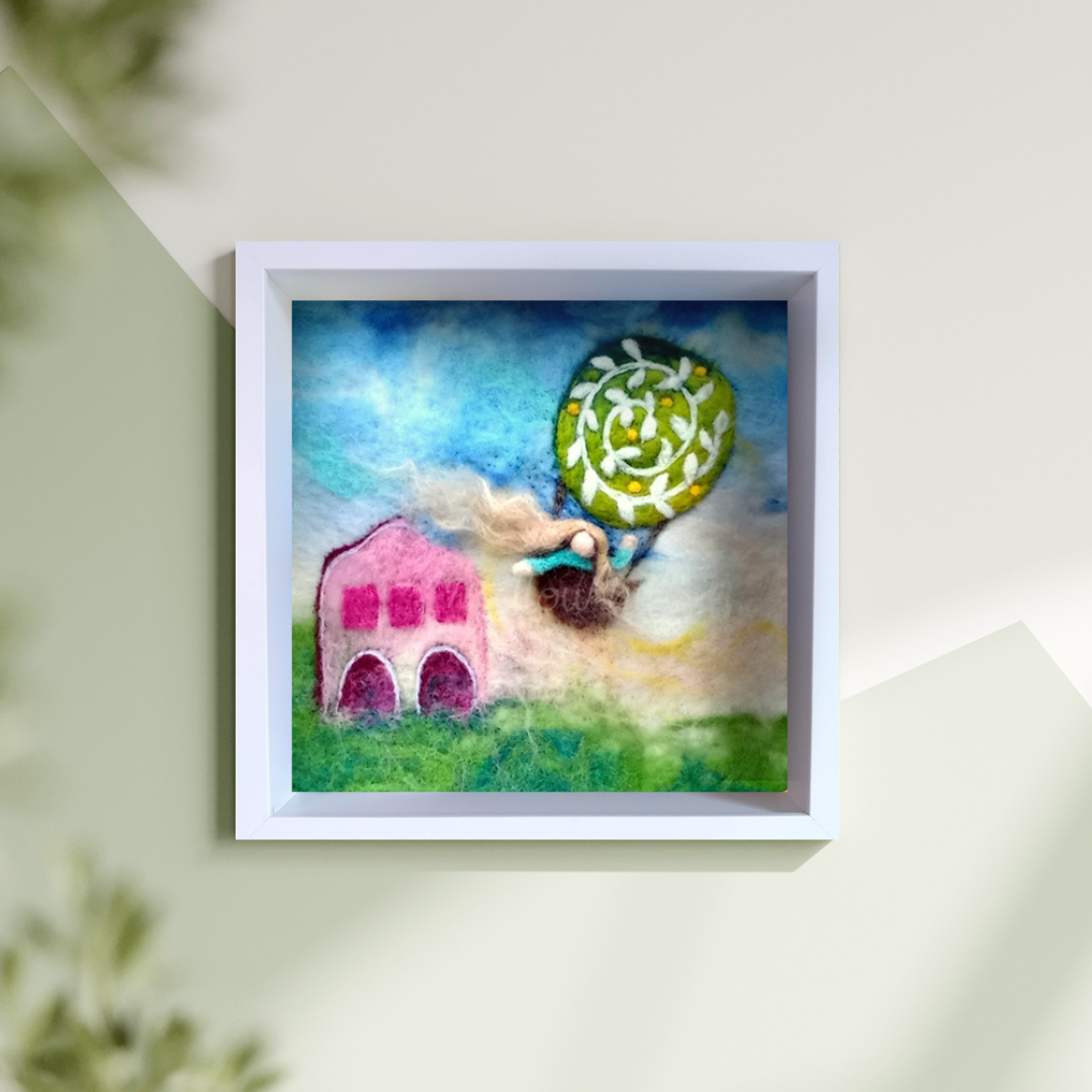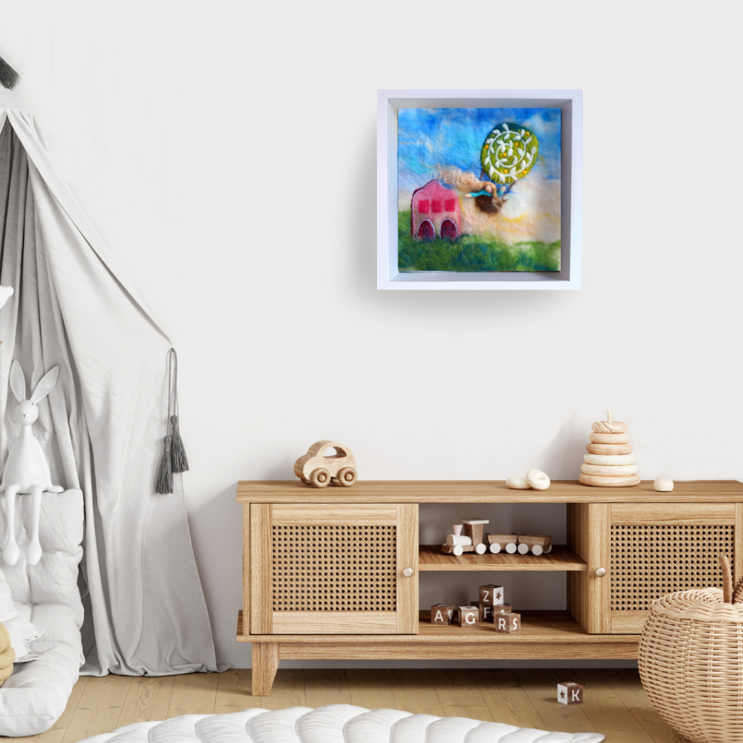 Vlněné malby Mellow hills jsou vytvořeny pomocí mokré i suché techniky plstění přírodní vlnou.