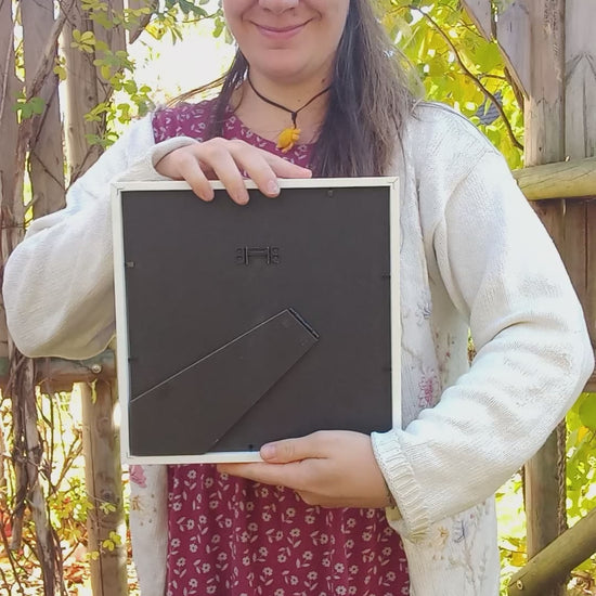 Obraz je dodáván se samolepícím háčkem pro pověšení bez vrtání. Můžete jej však i umístit na nábytek a opřít, díky zabudovanému stojánku.